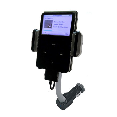 Buy Advanced Car Mount System for Apple iPod Video/Classic/NANO 4th Generation - 360 degrees rotating Neck, built-in cutting edge FM Transmitter & Charger Now