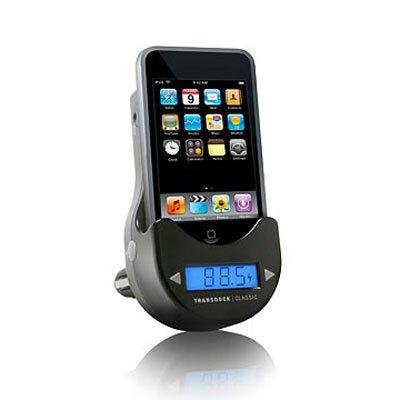 ALL NEW FM transmitter that plays, charges and cradles iPod. TransDock Classic broadcasts your iPod to an open FM frequency between 88.1 to 107.9 and with IntelliTune technology, you can scan for these open FM frequencies automatically with the simple push of a button. Its intelligent power control turns TransDock Classic on when the iPod is docked, and off when TransDock Classic is not in use. So instead of spending a small fortune on a separate transmitter, charger and cup holder cradle, TransDock Classic combines all of these features into one elegant, cost-effective device. TransDock Classic requires no installation this makes it a great alternative to expensive custom installations. Its all-in-one functionality and superior audio performance and sound quality also elevate TransDock Classic above separate, lower-end FM transmitters. It works with any dockable iPod, including the iPod nano with the included custom fit inserts.